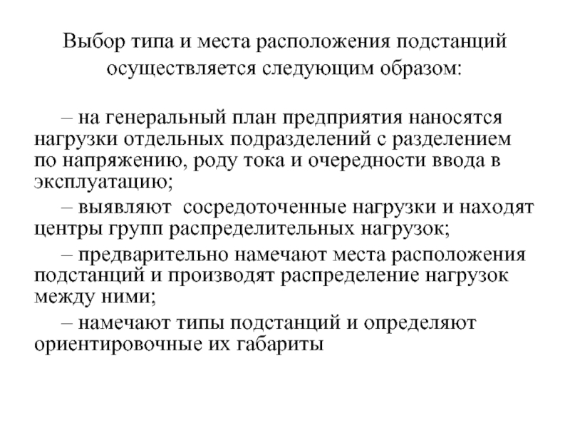 Слайд 3Выбор типа и места расположения подстанций осуществляется следующим образом: