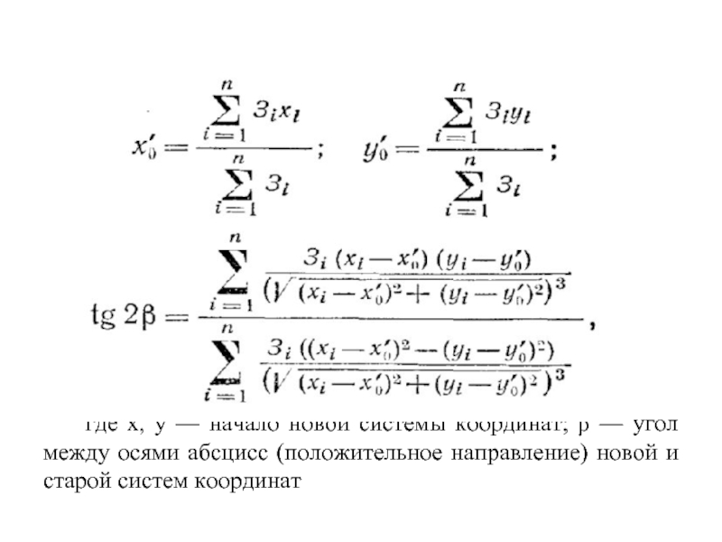 где х, у — начало новой системы координат; β — угол