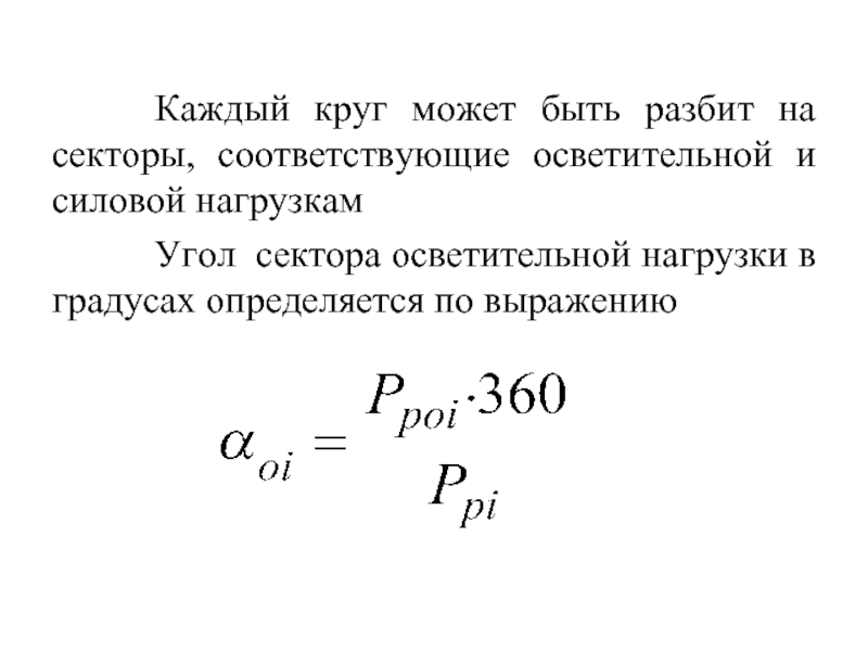 Угол сектора осветительной нагрузки в градусах определяется по выражению