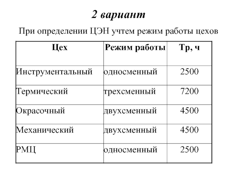 При определении ЦЭН учтем режим работы цехов