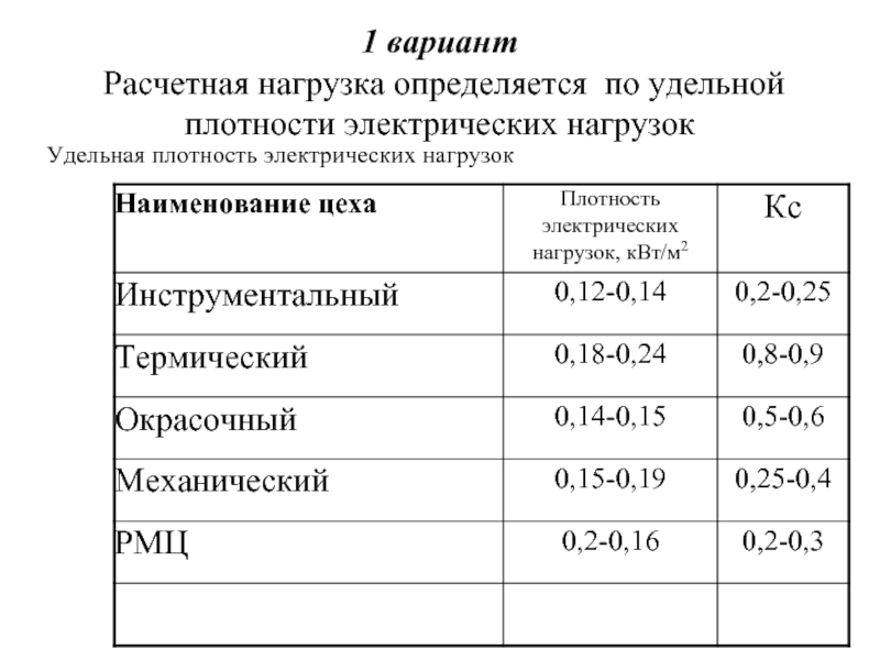Расчетная нагрузка определяется по удельной плотности электрических нагрузок