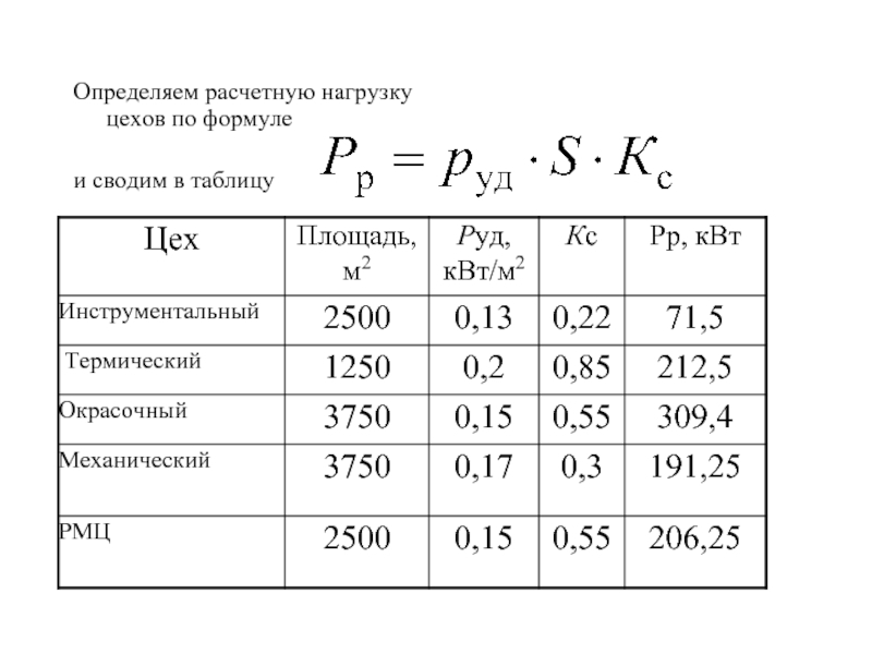 m и равна расчетной нагрузке соответствующего цеха