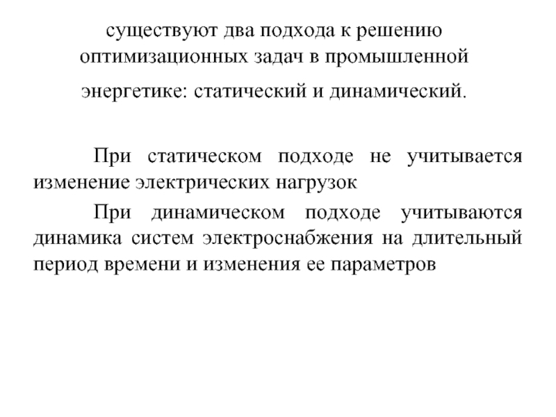 Слайд 27существуют два подхода к решению оптимизационных задач в промышленной энергетике: статический