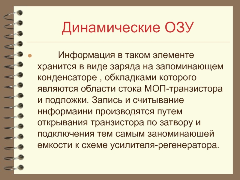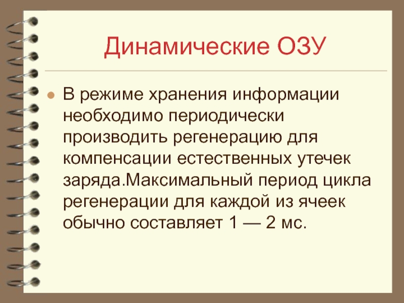 В режиме хранения информации необходимо периодически производить регенерацию для компенсации
