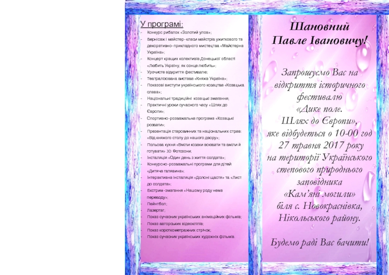 Презентація старовинних та національних страв: «Від княжого столу до нашого двору»;