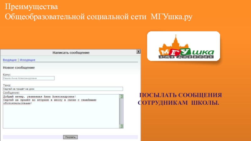 ПОСЫЛАТЬ СООБЩЕНИЯ СОТРУДНИКАМ ШКОЛЫ.