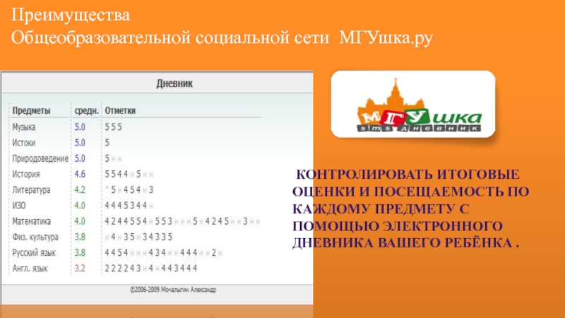 КОНТРОЛИРОВАТЬ ИТОГОВЫЕ ОЦЕНКИ И ПОСЕЩАЕМОСТЬ ПО КАЖДОМУ ПРЕДМЕТУ С ПОМОЩЬЮ ЭЛЕКТРОННОГО ДНЕВНИКА ВАШЕГО РЕБЁНКА .