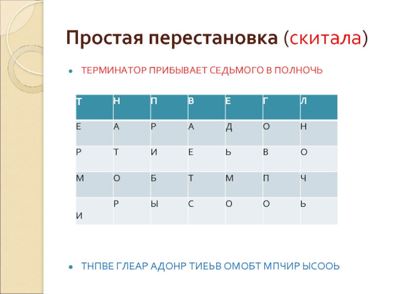 Слайд 7Простая перестановка (скитала)