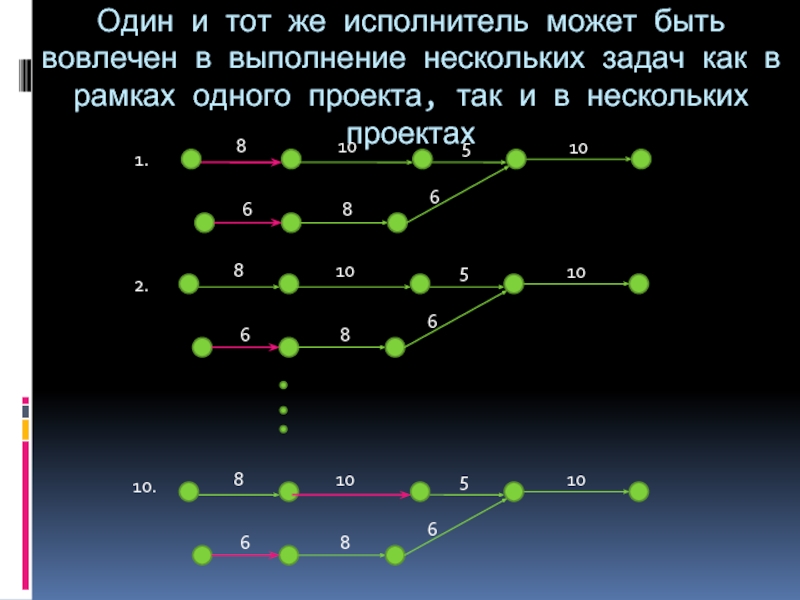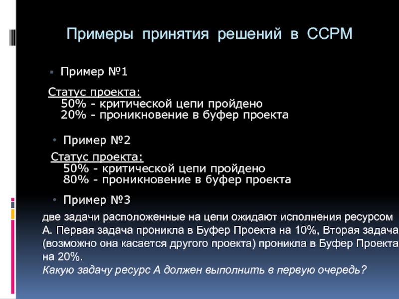 две задачи расположенные на цепи ожидают исполнения ресурсом А. Первая задача проникла в Буфер Проекта на 10%, Вторая задача (возможно она касается другого проекта) проникла в Буфер Проекта на 20%.