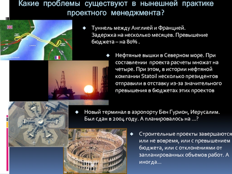 Нефтяные вышки в Северном море. При составлении проекта расчеты множат на четыре. При этом, в истории нефтяной компании Statoil несколько президентов отправили в отставку из-за значительного превышения в бюджетах этих проектов