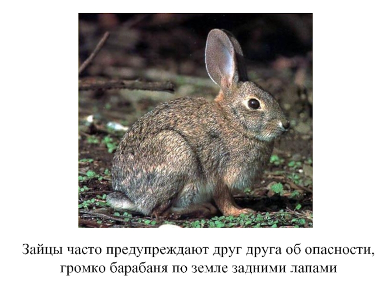 Слайд 8Зайцы часто предупреждают друг друга об опасности,