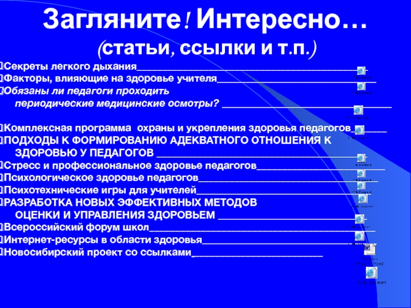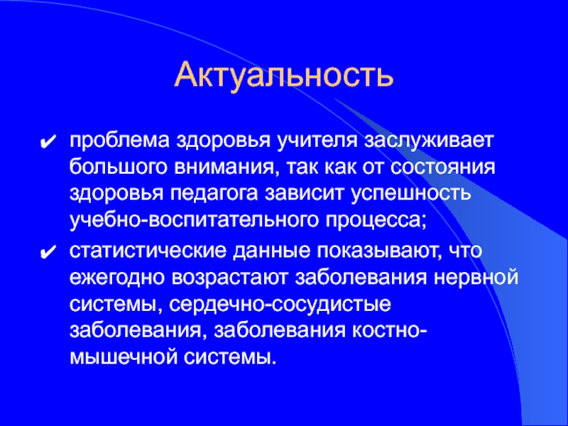 проблема здоровья учителя заслуживает большого внимания, так как от состояния здоровья