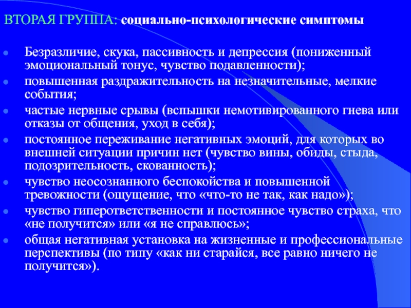 Слайд 13ВТОРАЯ ГРУППА: социально-психологические симптомы