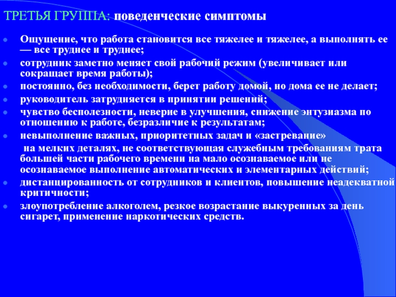 Слайд 14ТРЕТЬЯ ГРУППА: поведенческие симптомы