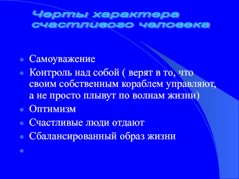 Контроль над собой ( верят в то, что своим собственным кораблем