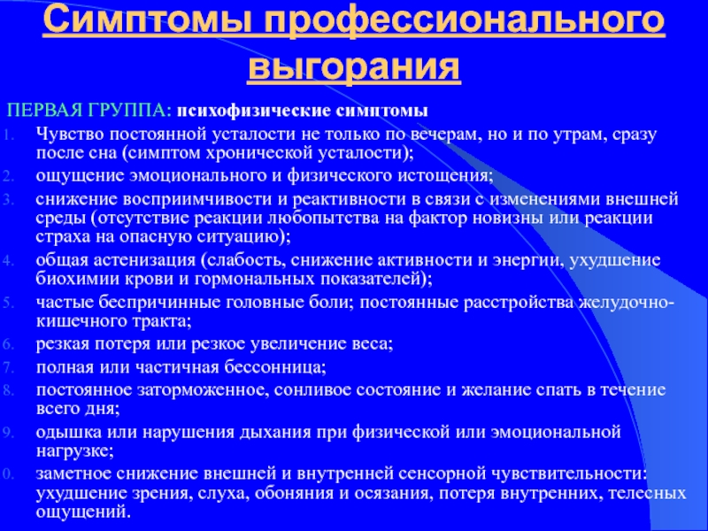 ПЕРВАЯ ГРУППА: психофизические симптомы