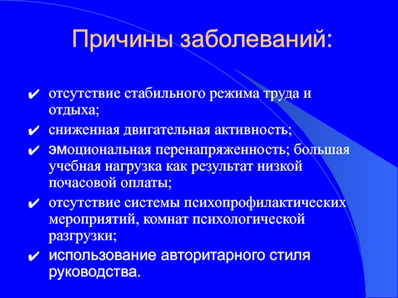 отсутствие системы психопрофилактических мероприятий, комнат психологической разгрузки;