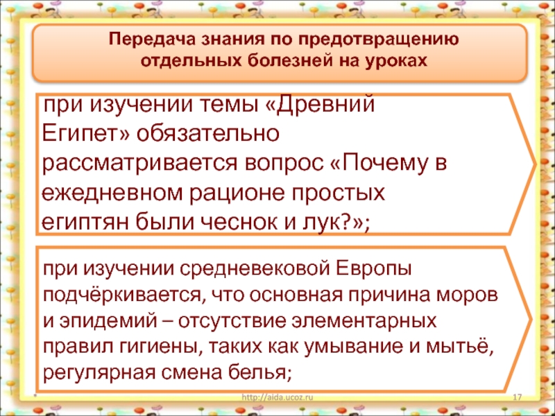 при изучении темы «Древний Египет» обязательно рассматривается вопрос «Почему в ежедневном рационе простых египтян были чеснок и лук?»;