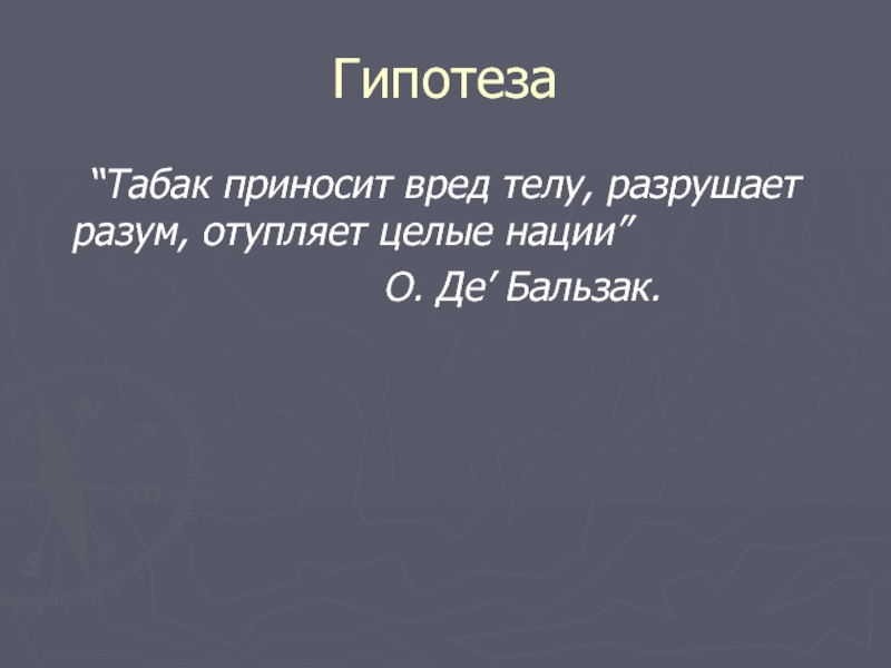 Слайд 22 “Табак приносит вред телу, разрушает разум, отупляет целые