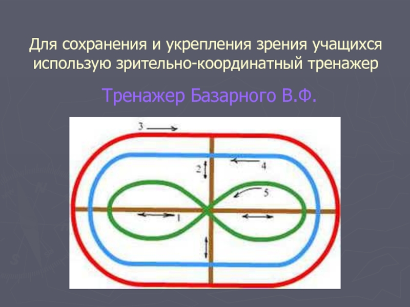 Слайд 4Для сохранения и укрепления зрения учащихся использую зрительно-координатный тренажер