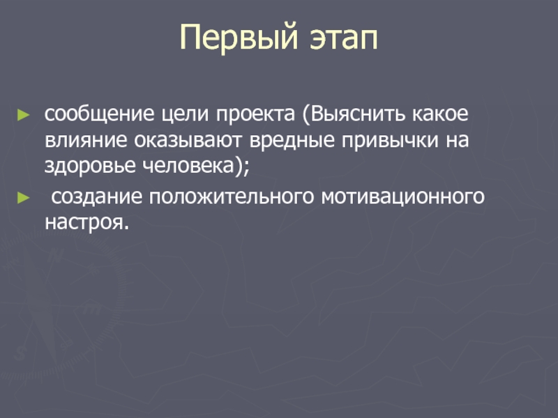сообщение цели проекта (Выяснить какое влияние оказывают вредные привычки на