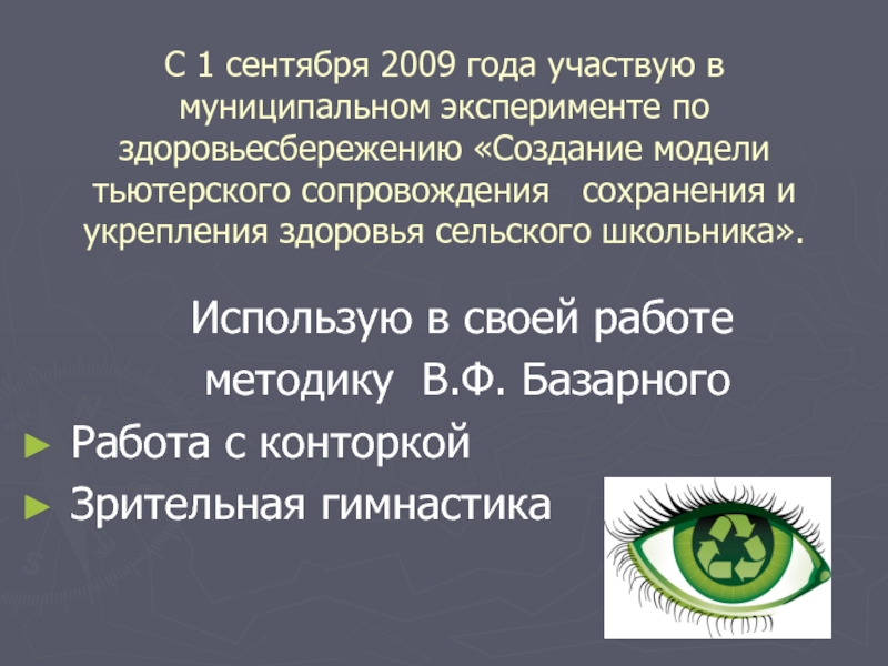 С 1 сентября 2009 года участвую в муниципальном эксперименте по здоровьесбережению