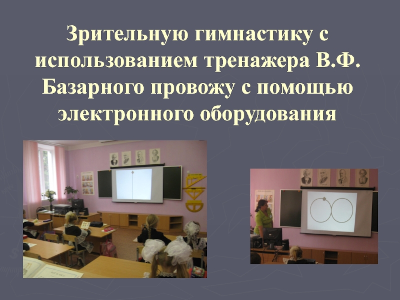 Зрительную гимнастику с использованием тренажера В.Ф.Базарного провожу с помощью электронного оборудования