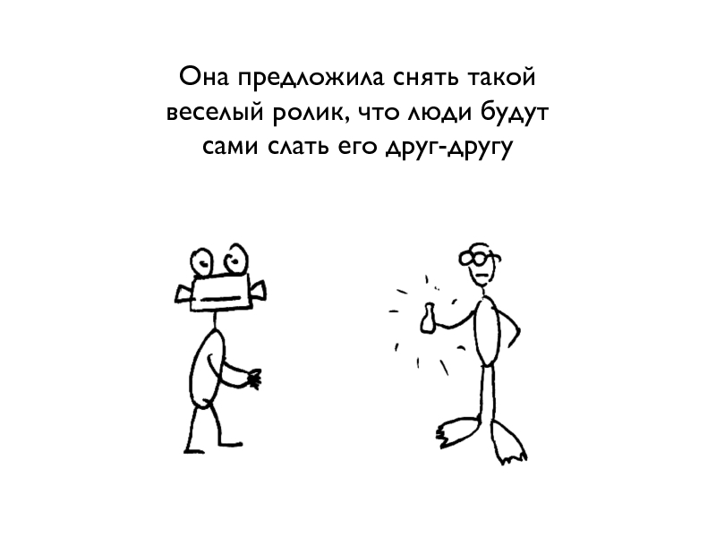 Слайд 11Она предложила снять такой веселый ролик, что люди будут сами слать