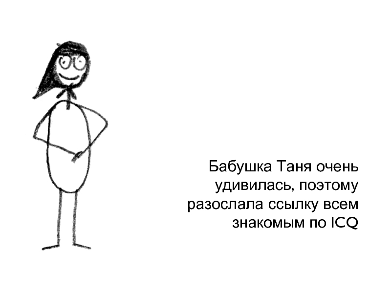 Слайд 18Бабушка Таня очень удивилась, поэтому разослала ссылку всем знакомым по ICQ