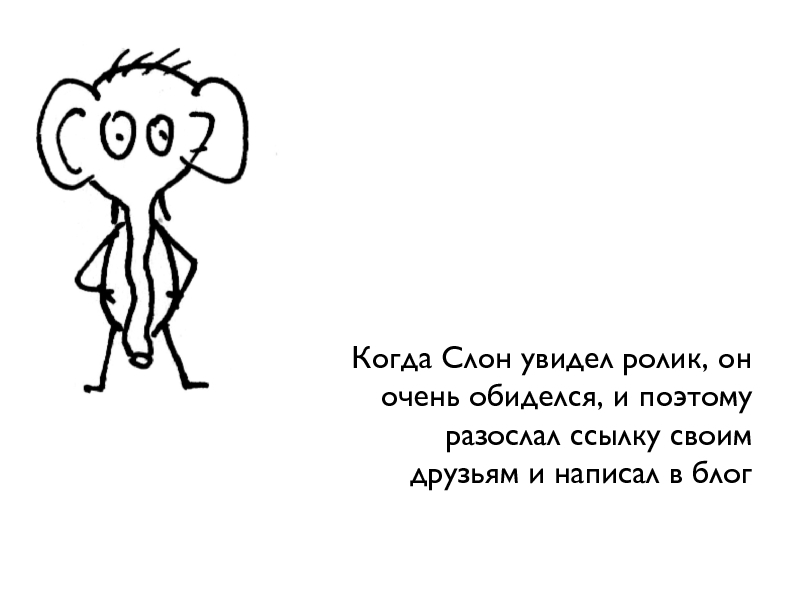 Слайд 16Когда Слон увидел ролик, он очень обиделся, и поэтому разослал ссылку