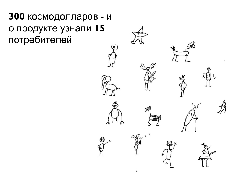 Слайд 7300 космодолларов - и о продукте узнали 15 потребителей