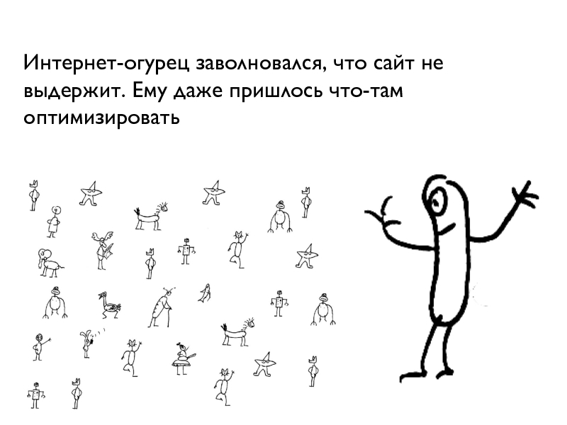 Слайд 20Интернет-огурец заволновался, что сайт не выдержит. Ему даже пришлось что-там оптимизировать