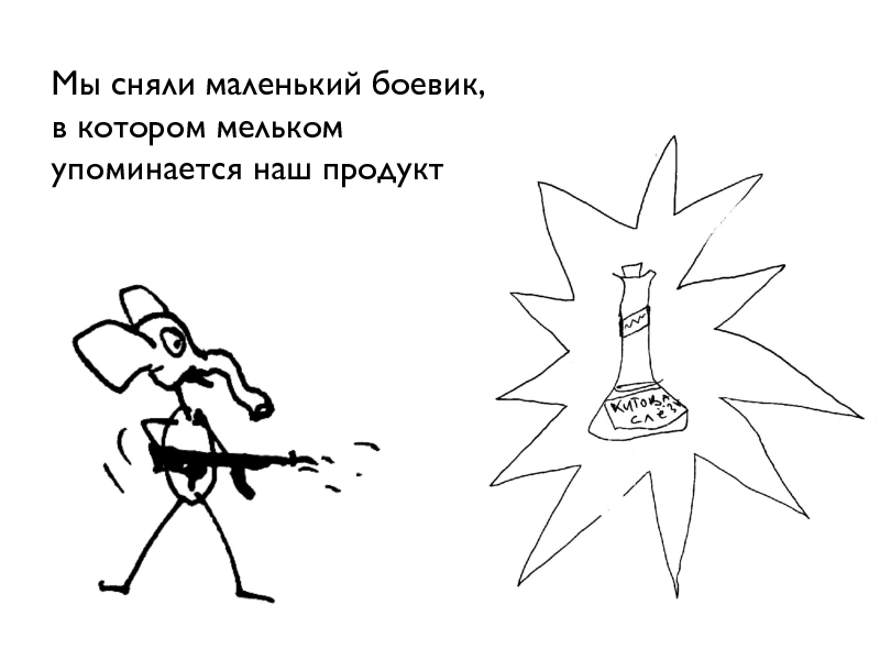 Слайд 13Мы сняли маленький боевик, в котором мельком упоминается наш продукт