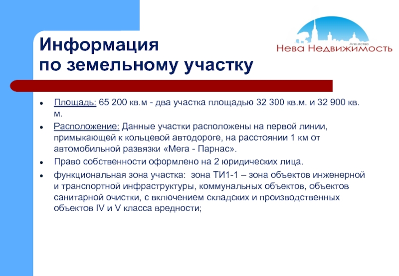 Расположение: Данные участки расположены на первой линии, примыкающей к кольцевой автодороге, на расстоянии 1 км от автомобильной развязки «Мега - Парнас».