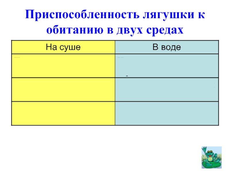 Слайд 4Приспособленность лягушки к обитанию в двух средах
