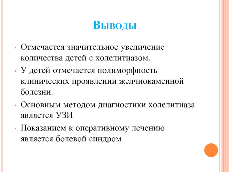 частоту и динамику развития желчнокаменной болезни у детей. Определить особенности клинических проявлении холелитиаза и уточнить показания к оперативному лечению