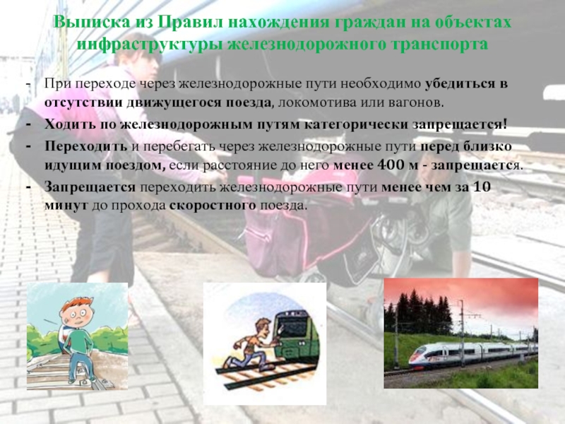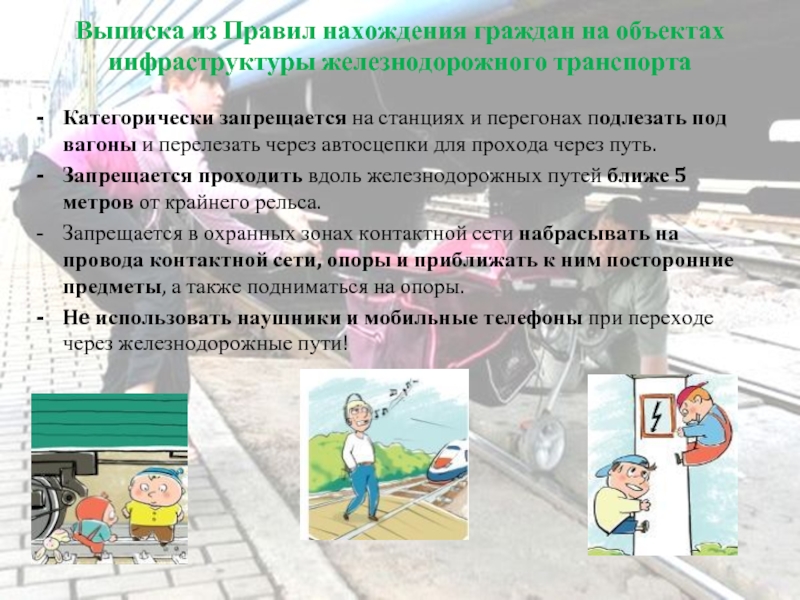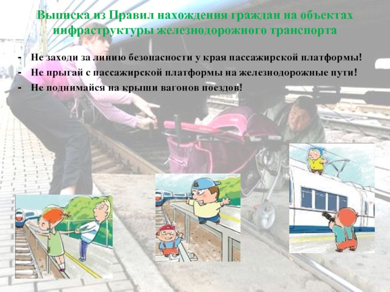 Слайд 10Выписка из Правил нахождения граждан на объектах инфраструктуры железнодорожного транспорта