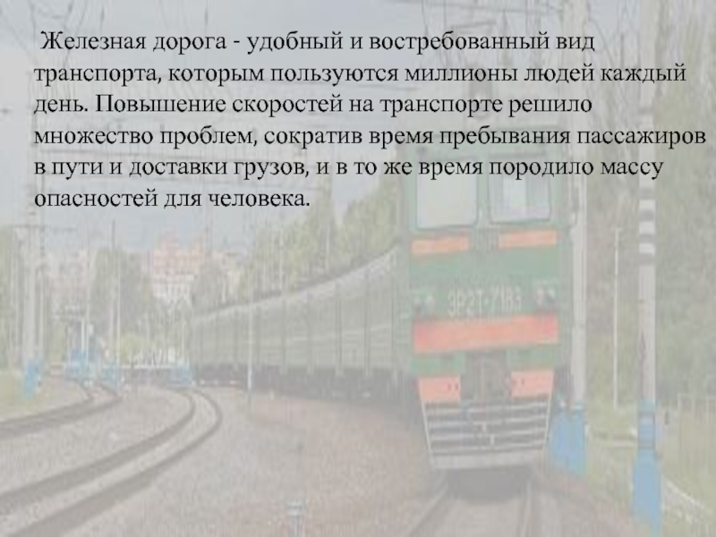 Слайд 2 Железная дорога - удобный и востребованный вид транспорта,