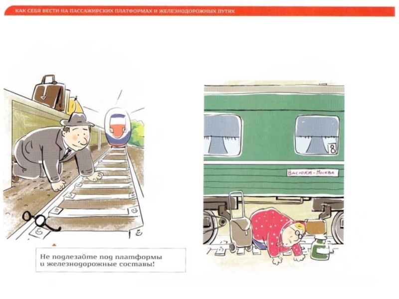 станциях и перегонах подлезать под вагоны и перелезать через автосцепки для прохода через путь.