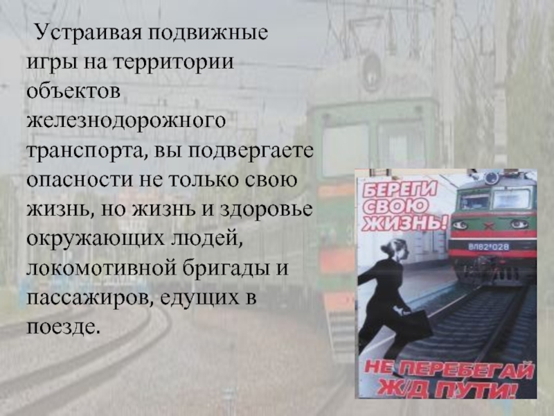 Слайд 4 Устраивая подвижные игры на территории объектов железнодорожного транспорта,