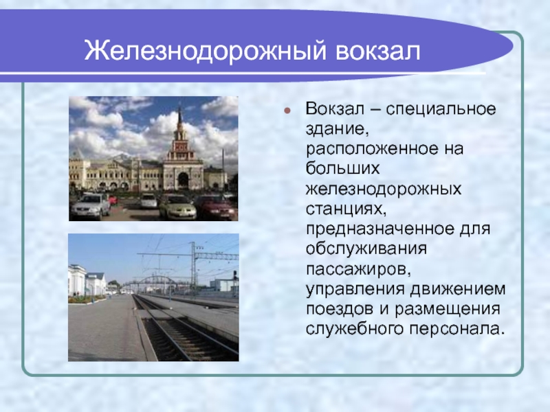 Вокзал – специальное здание, расположенное на больших железнодорожных станциях, предназначенное