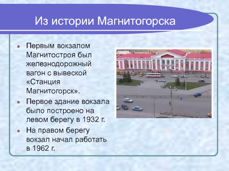 Первое здание вокзала было построено на левом берегу в 1932 г.