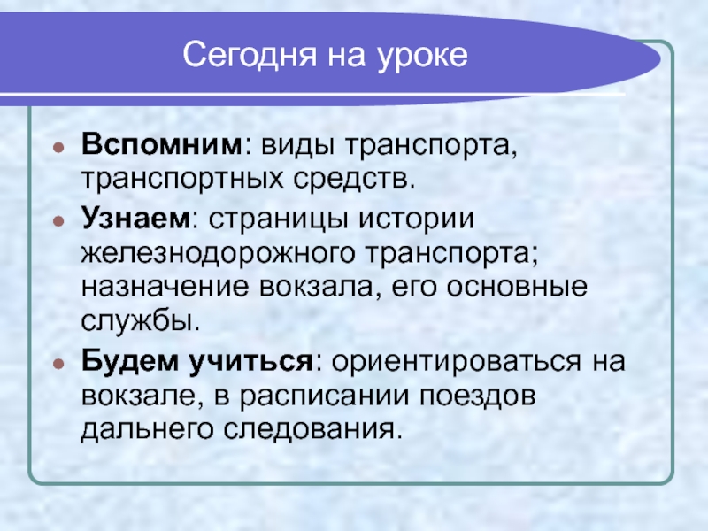 Будем учиться: ориентироваться на вокзале, в расписании поездов дальнего следования.