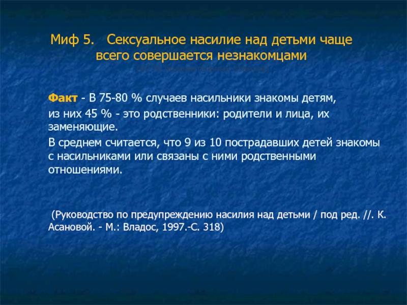 Факт - В 75-80 % случаев насильники знакомы детям,