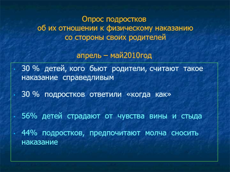 30 % детей, кого бьют родители, считают такое наказание справедливым