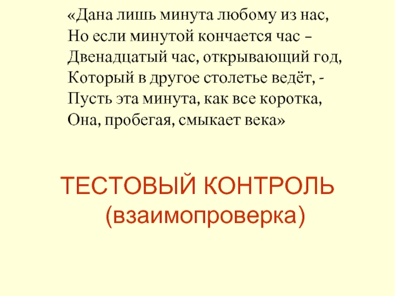 ТЕСТОВЫЙ КОНТРОЛЬ (взаимопроверка)