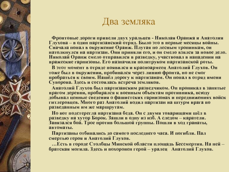 Комсомольцы и молодёжь! Изучайте военное дело, готовьте себя к защите любимой Родины. Будьте такими, каким был наш земляк Анатолий Глухов. Я клянусь, что вся моя жизнь будет отдана на разгром врага до полного его уничтожения.