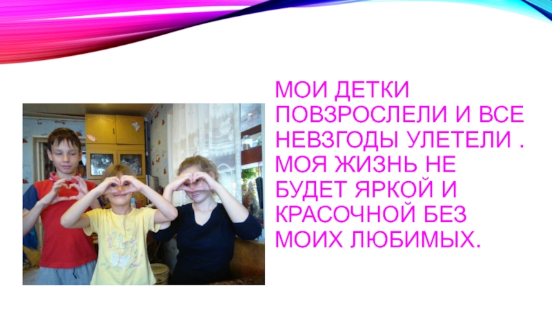 Слайд 23МОИ ДЕТКИ ПОВЗРОСЛЕЛИ И ВСЕ НЕВЗГОДЫ УЛЕТЕЛИ . МОЯ ЖИЗНЬ НЕ