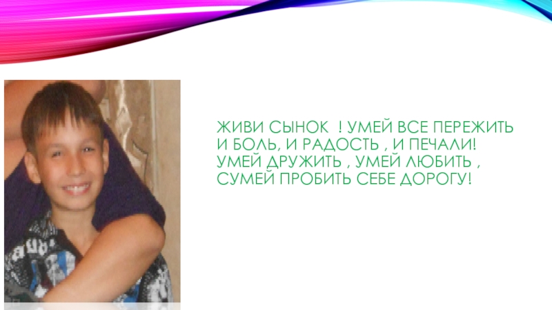 Слайд 16ЖИВИ СЫНОК ! УМЕЙ ВСЕ ПЕРЕЖИТЬ
