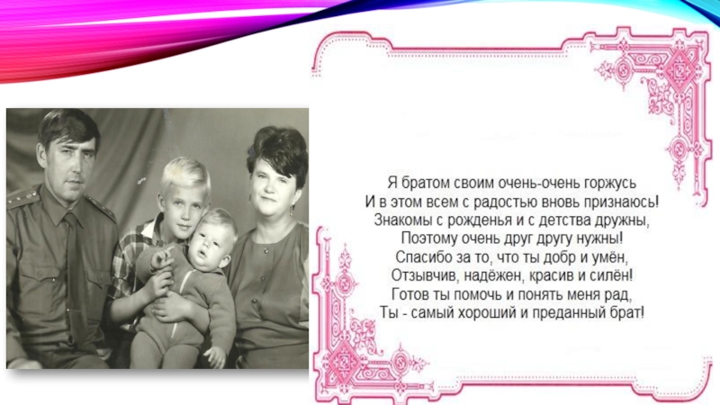 Слайд 20БРАТИШКА МОЙ ПОДРОС И ДОМОЙ ЖЕНУ ПРИВЕЗ, ЗА ОДНО И СЫНА-БОРЮ